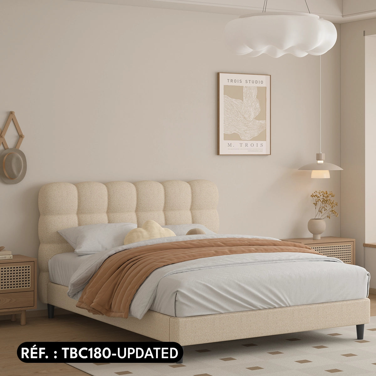 Sa structure en bois avec lattes garantit un bon soutien et prolonge la durée de vie du matelas. Le revêtement en tissu offre un toucher doux et un style soigné, facile à assortir.